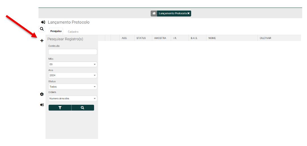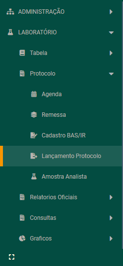 1 - Clique em Laboratório > Protocolo > Lançamento Protocolo.