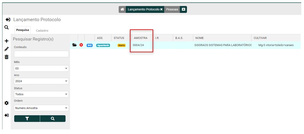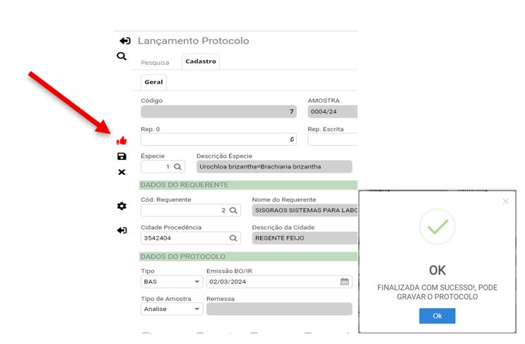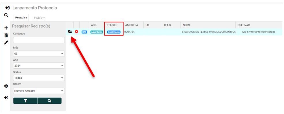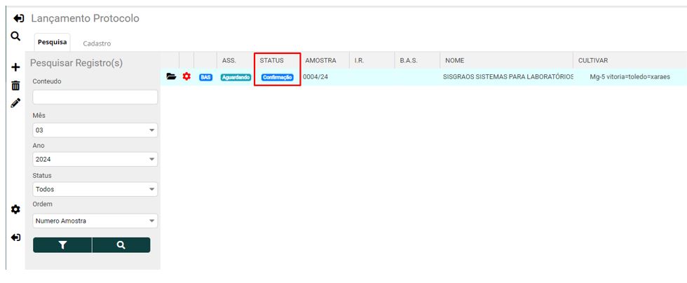 11 - Volte na tela de lançamento do protocolo e verifique se o status estará em Confirmação.