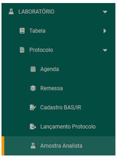 9 - Clique em Laboratório > Protocolo > Amostra Analista.