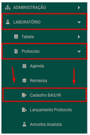 11 - Clique em Laboratório > Protocolo > Cadatro BAS/IR.