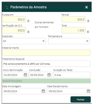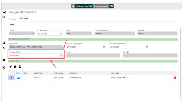 Aconselhamos nesta tela colocar a informação do lote, categoria e peneira.