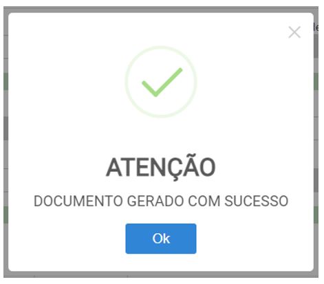 21 - Após a confirmação, o sistema apresentará uma tela que confirmará que o documento foi gerado com sucesso!