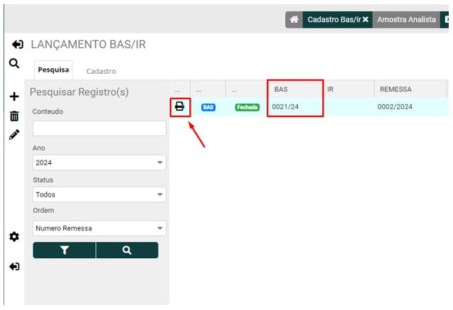 Após as analises serem finalizadas, poderá então gerar o BAS ou IR escolhendo qual amostra poderá estar anexada ao documento que deseja. Conforme abaixo:
