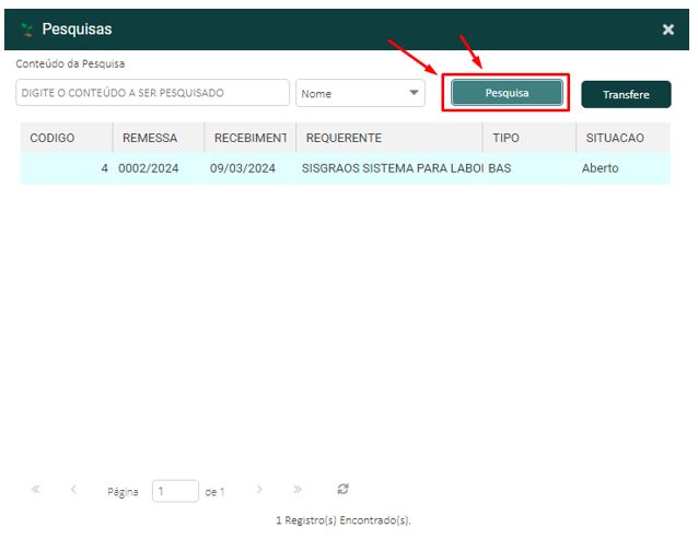 15 - Dê um duplo clique ou selecione a remessa e clique em “transfere” e as informações serão transferidas. Após sair do campo de remessa, ele preencherá os campos em cinza de forma automática.