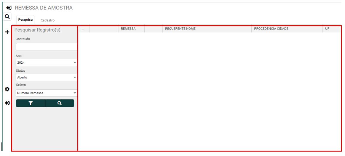 13 - Busque o número da remessa gerada, para que o sistema saiba quais as amostras e o requerente.