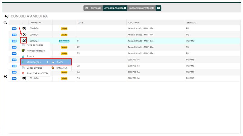 1 - Na ordem de serviços dos analistas abra no icone de catraca e ache a opção de P.M.S. conforme ilustado abaixo.