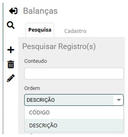 2 - Ao abrir a tela encontramos algumas opções para a pesquisa da Balança.