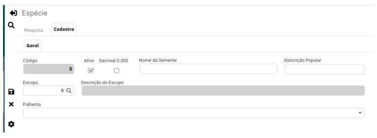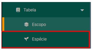 1 - Para adicionar uma espécie vá em TABELAS > ESPÉCIE.