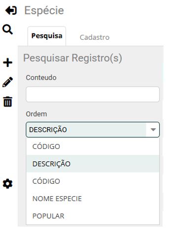 2 - Ao abrir a tela encontramos algumas opções para a pesquisa de uma espécie.