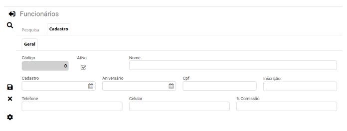 3 - Para incluir um funcionário clique no ícone "+".