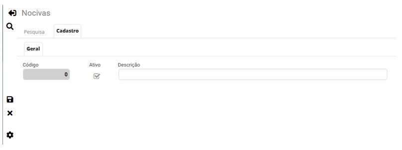 3 - Para incluir uma nociva clique no ícone "+".