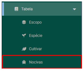 1 - Para adicionar uma nociva vá em TABELAS > NOCIVAS.