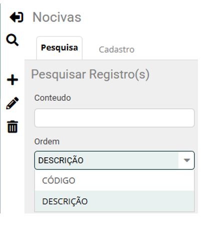 2 - Ao abrir a tela encontramos algumas opções para a pesquisa de um nocivas.