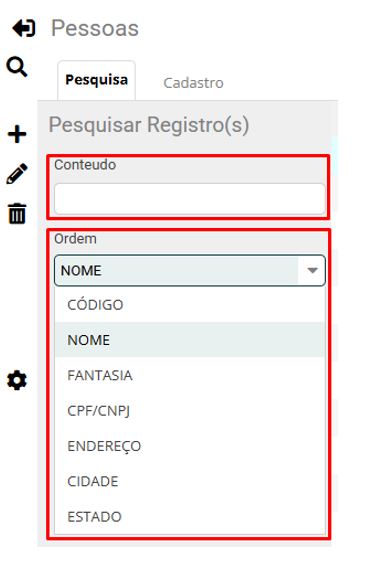 2 - Ao abrir a tela encontramos algumas opções para a pesquisa de uma pessoa.