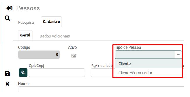 4 - Em tipo de pessoa selecione o que o cliente é para a empresa.