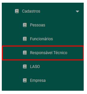1 - Para adicionar um responsável técnico vá em CADASTROS > RESPONSÁVEL TÉCNICO.