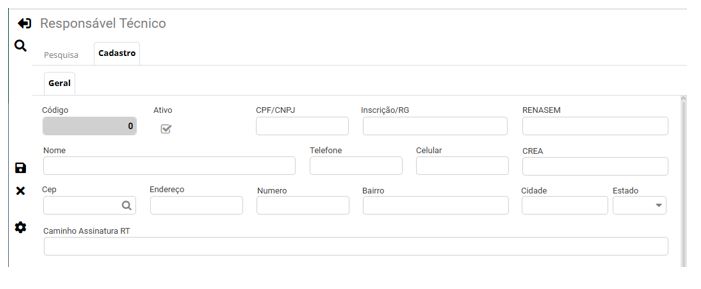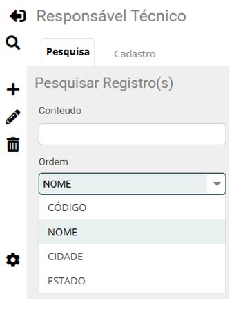 2 - Ao abrir a tela encontramos algumas opções para a pesquisa de um responsável técnico.