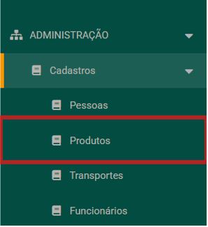 1 - Para cadastrar um produto vá em ADMINISTRAÇÃO > CADASTRO > PRODUTOS.