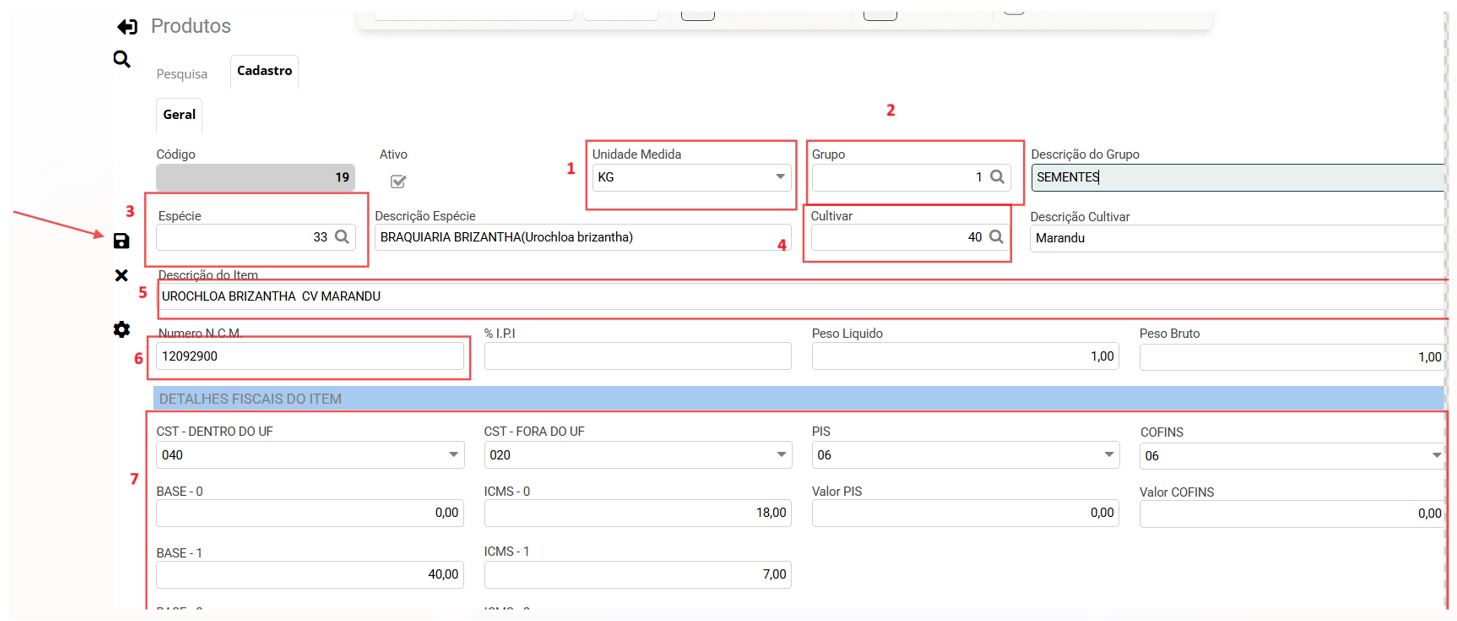 6 - Número NCM – Campo obrigatório; utilize o código correto. Sempre confirme com a contabilidade.