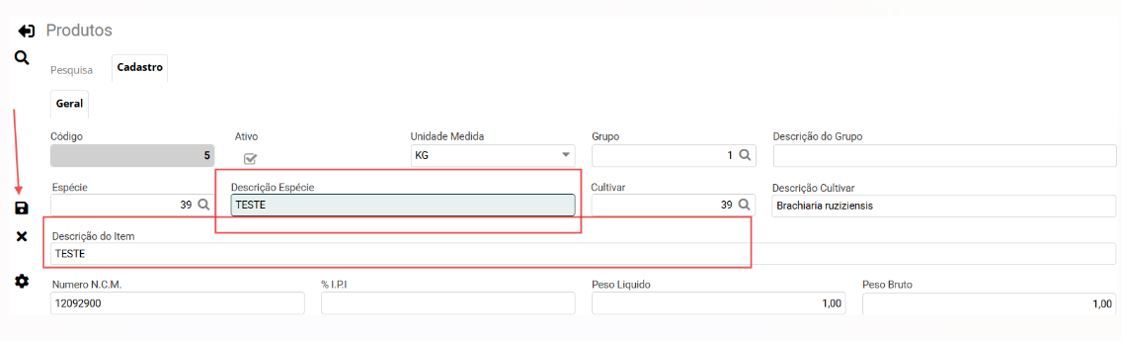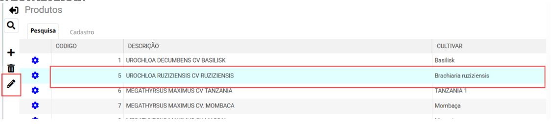 1 - Para alterar um produto selecione o produto desejado e clique no lápis na lateral esquerda para alterar.