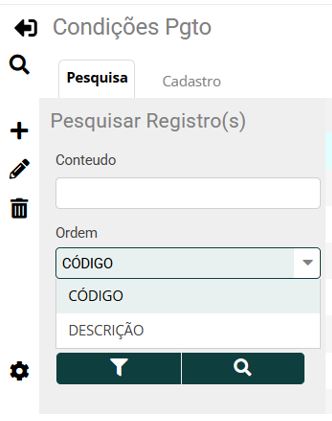 2 - Ao abrir a tela encontramos algumas opções para a pesquisa das condições de pagamento.