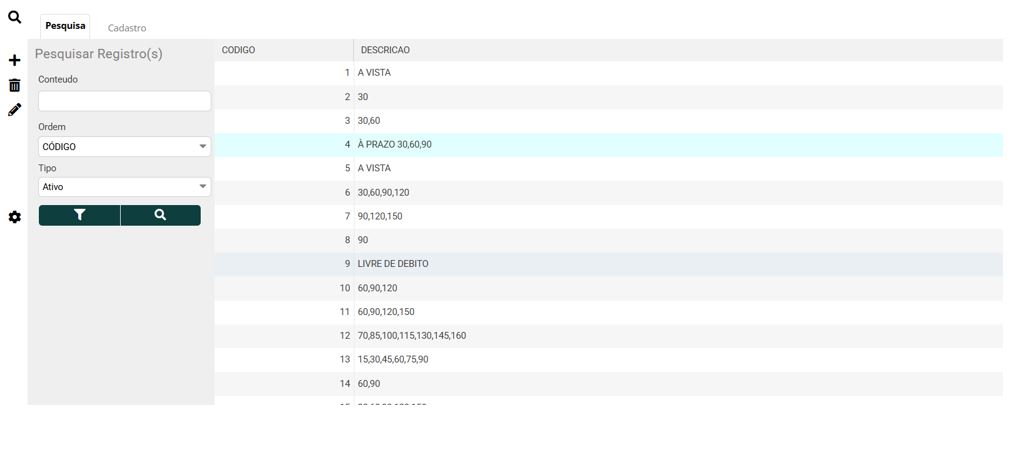 5 - Feito isso estará cadastrado a condição de pagamento e aparecerá na listagem.
